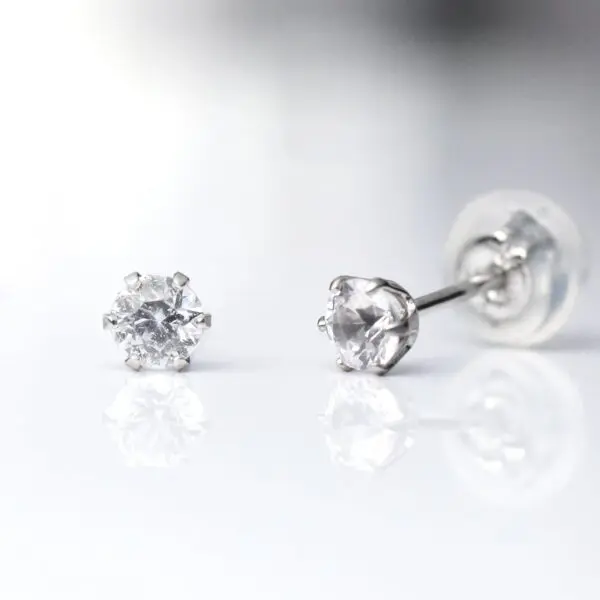 【材質】ホワイトサファイア2石合計約0.24ct、Pt900、シリコン ※同等の物をお付けしますが、キャッチ等の付属品の仕様は変更となる場合がございます。